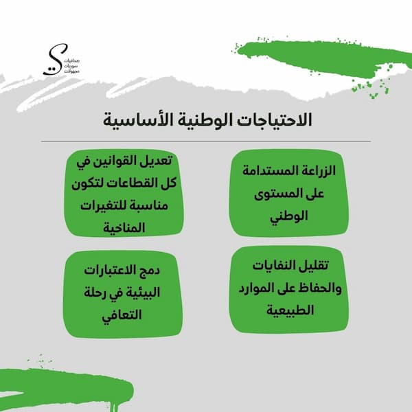 يُعدد الأسطى جملة من «الاحتياجات الوطنية الأساسية للنهوض والمناصرة لقضايا التغير المناخي، التي يجب أن تبدأ من الحكومات والمؤسسات المدنية معاً.