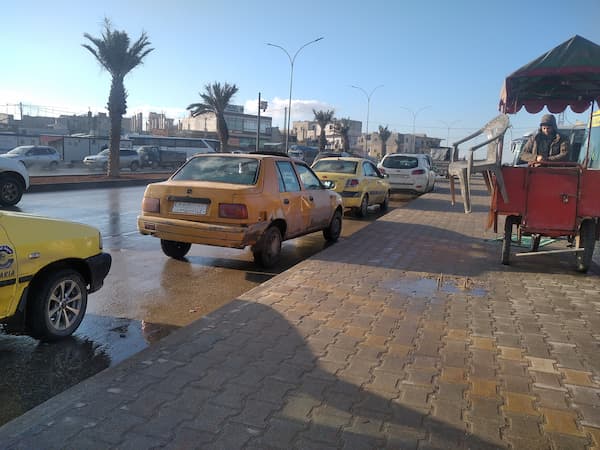 اللون الأصفر الذي ارتبط بـ «التكسي» يفرض حضوره وسط أرتال السيارات المزدحمة. على مفارق الشوارع تصطف عشرات منها، معظمها من نوع «سابا»، الأكثر شهرة في المدن السورية، إلى جانب عدد قليل من سيارات «لانسر» القديمة، وأنواع أخرى مثل «ماتيز» و«تيكو» و«كيا ريو».