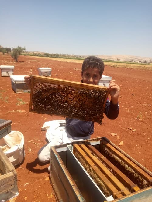 «في سنوات الجفاف تصبح تربية النحل تجارة خاسرة»، يقول غياث فتح الله، إذ يُعتمد لتغذية النحل على محاليل مصنوعة من السكر كي يبقى حياً.