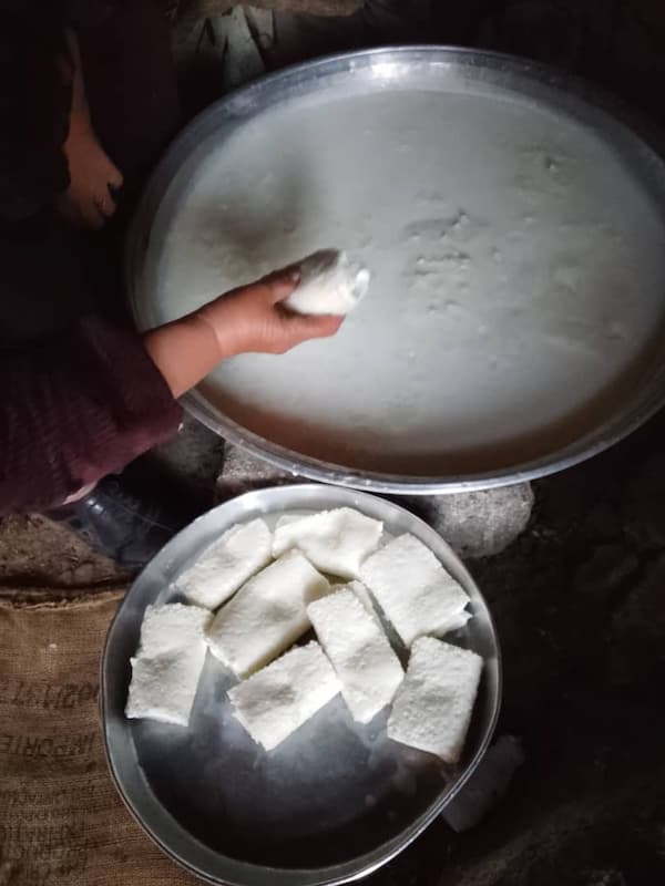 يُغلى الحليب بعناية على النار، ثم يُسكب في أوانٍ مسطحة ويُغطى بسلة من الصفصاف وبطانية، ويُترك ليوم كامل حتى تتماسك طبقة الدسم العليا، لتتحول إلى كيمر كثيف وغني بالنكهة.